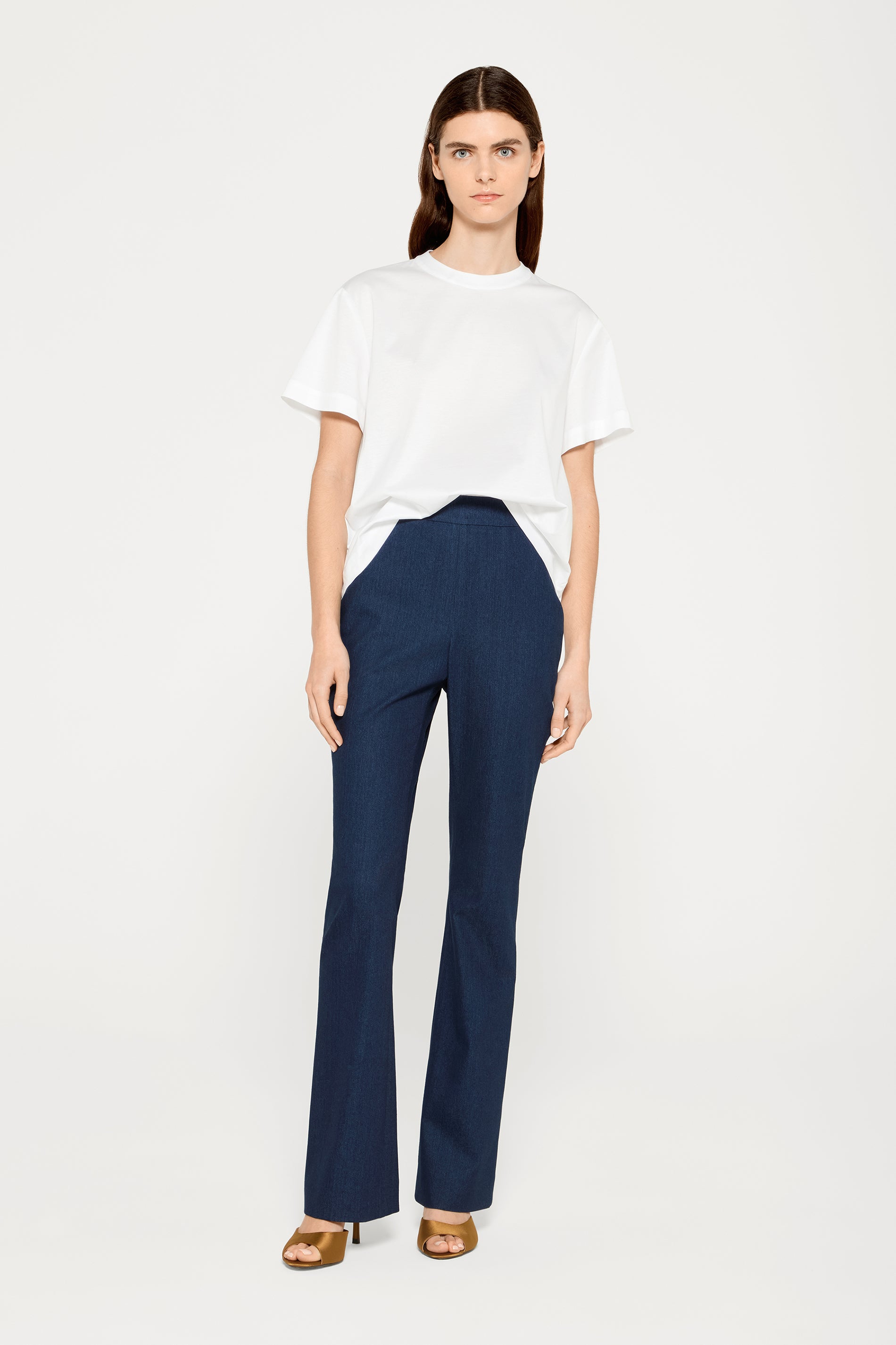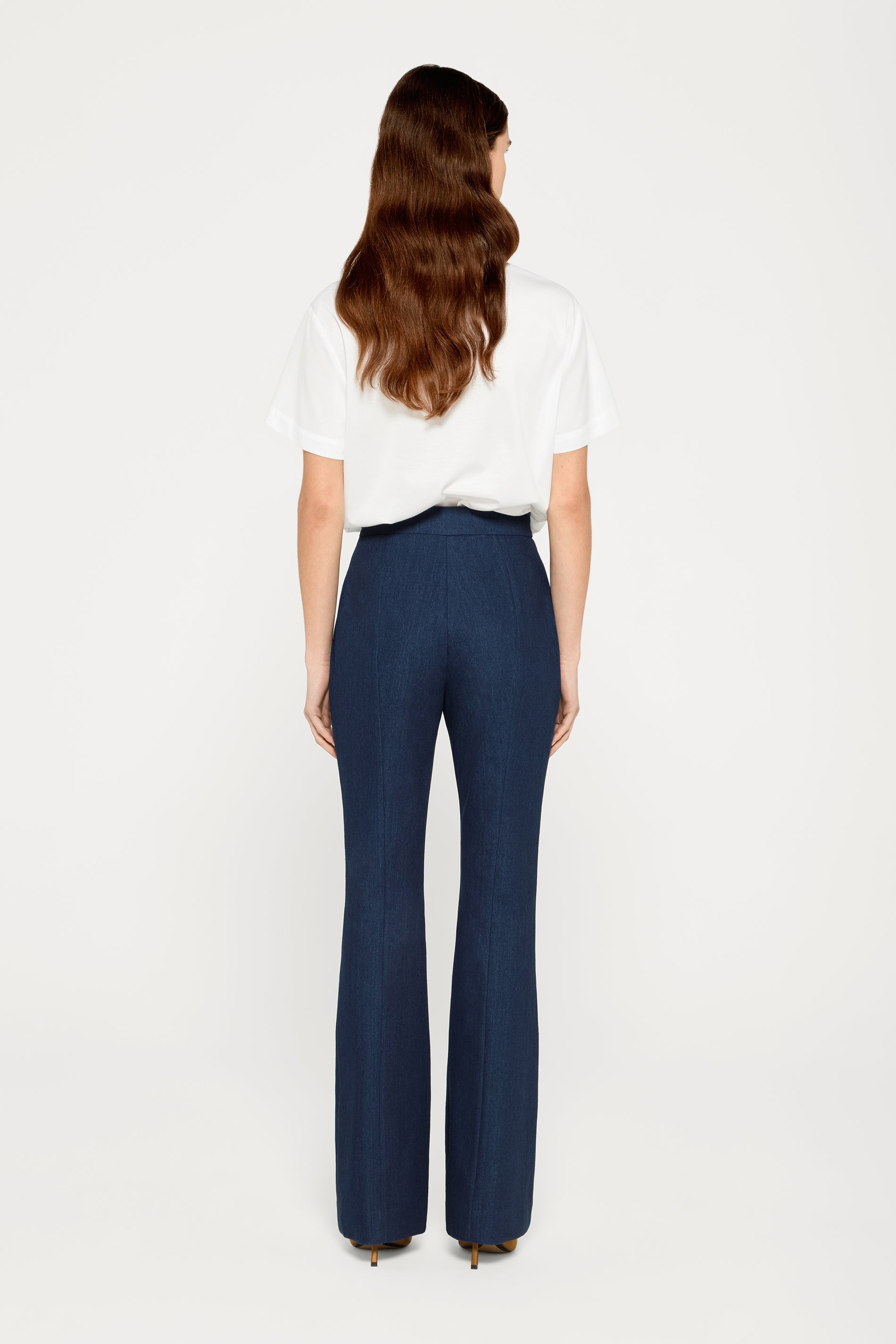 The Crater pants, crafted with a "jeans" fabric with slight stretch made in Italy by Loro Piana, is the perfect pair of pants to take you across seasons and can be easily styled with one of our blazer, our knitwear or one of our perfectly cut shirts. The pants are cut with a slight twist and feature front and back princess-line seams for a figure-hugging yet comfortable fit. The pants are finished with side pockets and an invisible side zipper.