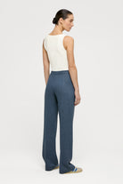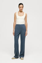 The Komorebi Pants are pants that are meant to keep you absolutely comfortable throughout your busy day while looking on point at any given moment in time thanks to its crease resistance. Made with an elastic waistband that is complemented with an invisible side zipper, these pants are ideal for travel and business, focusing on comfort without compromising on elegance. The pants are hand-crafted from a beautiful and crease-resistant 150s Super merino wool Loro Piana fabric and feature front and back princessline seams for a contoured yet comfortable fit. The pants are finished with side pockets.